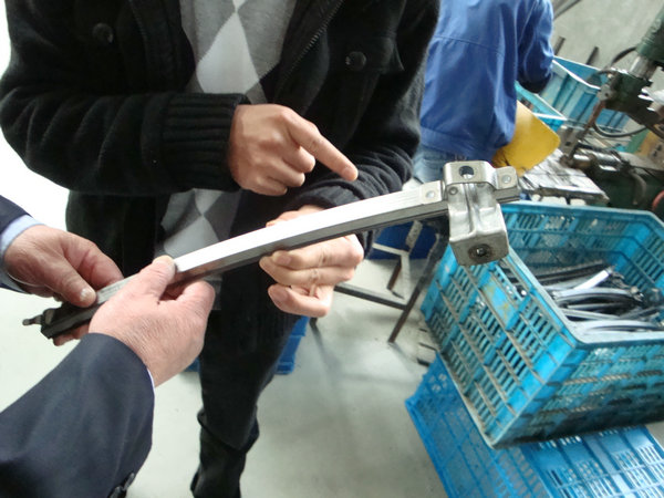 如:对焊接不牢的问题进行跟踪和实验,发现设备在连续自动点焊时,时间过短,导致焊接不牢,现改为人工脚踏点焊(下图),能有效保证焊接质量。已改进,合格率达100%。