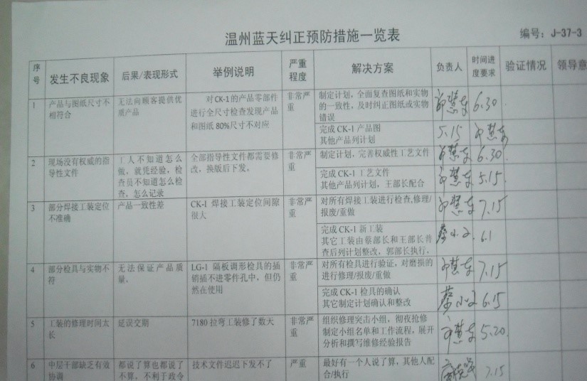 质上圆满结束和温州蓝天汽车零部件有限公司的质量改善合作,达到了双方预期的目标。