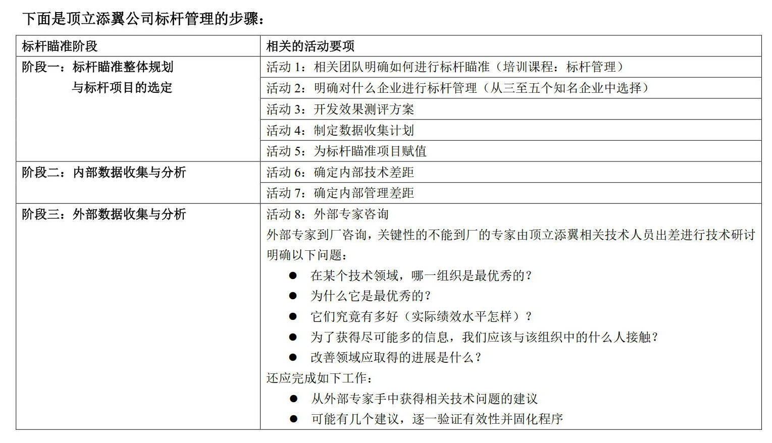 除了质量改善,质上公司也根据顶立添翼的要求进行了标杆管理方面的提升。