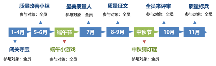 质上公司的咨询团队与北汽昌河质量部每年都策划制定相应的质量活动:全面质量管理知识竞赛、质量拍拍拍、最美昌河人、质量征文大赛、质量标兵等。质上认为,企业里的质量活动应该是持续的、波浪式的往前推动!